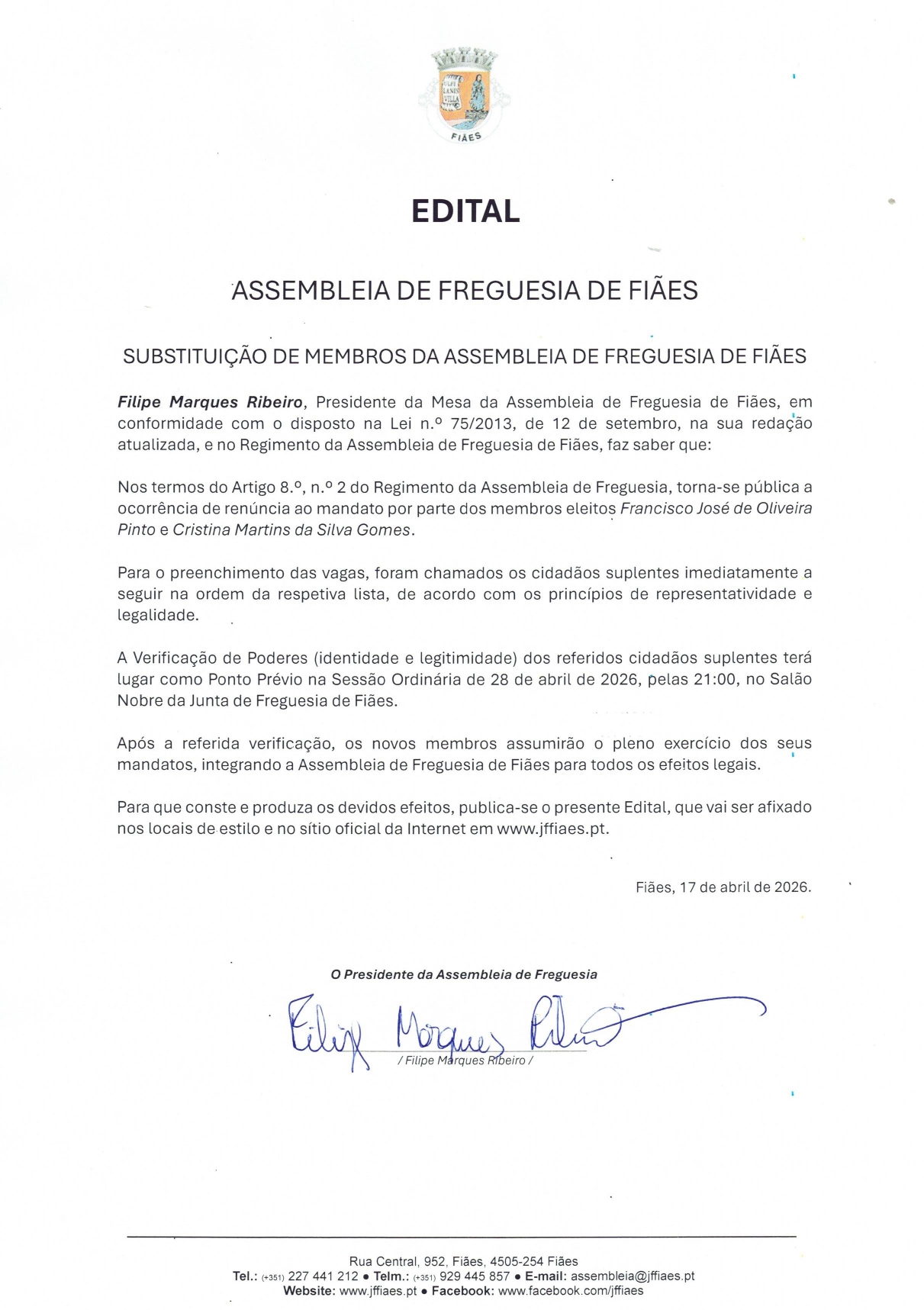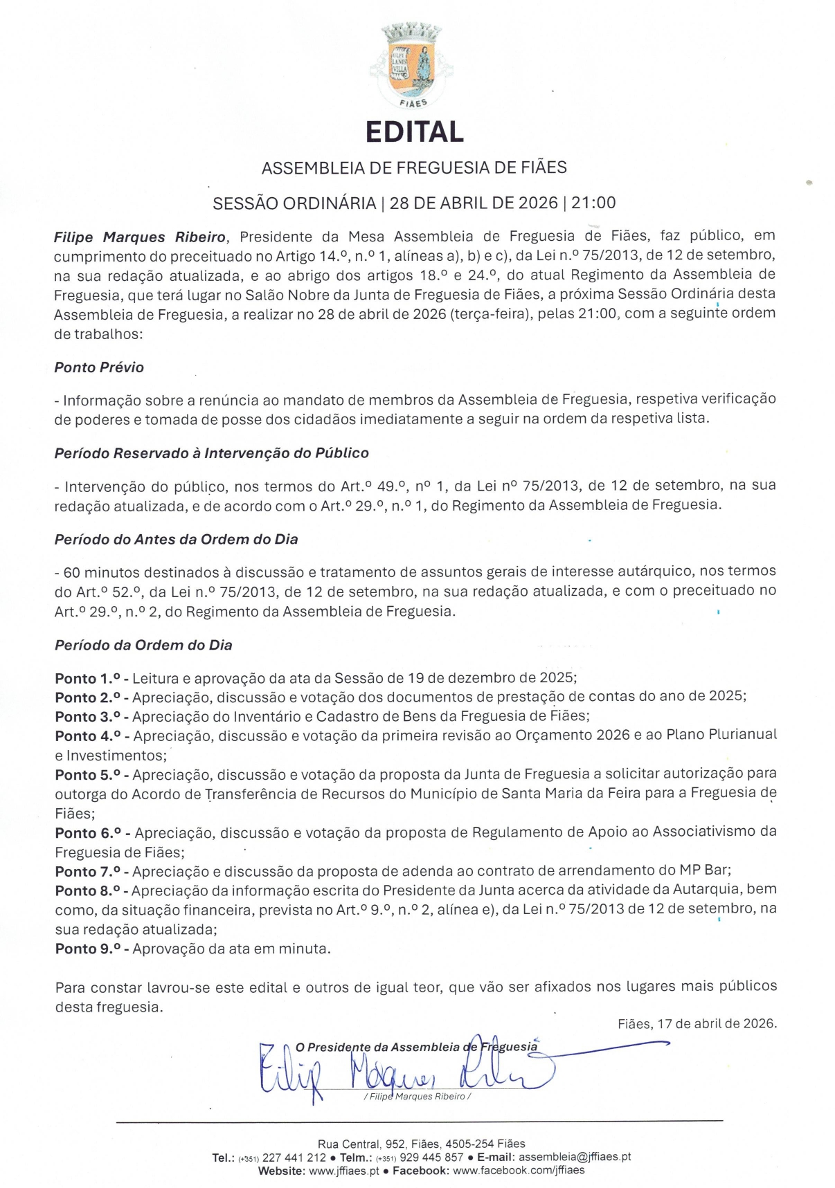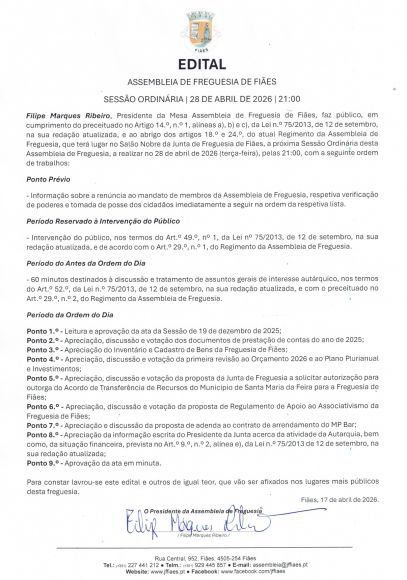Assembleia de Freguesia - Sessão Ordinária de 28 de abril de 2026